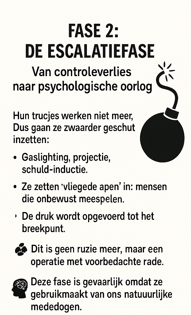 Zodra je het doorziet, verandert alles. Niet omdat zij veranderen, maar omdat jij niet langer reageert zoals voorheen. Hun grip verliest kracht wanneer jouw inzicht groeit.